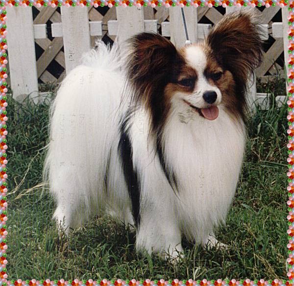 After a successful Puppy career in the UK, including BPIS at the prestigious Newmarket DCS 2 Day Open Show, Damon left to join the well known Art Etoile & Queen Bless Papillons in Japan. As well as a successful show dog he has proved himself to be an outstanding sire and has greatly contributed to the success of the Queen Bless Kennels. His progeny have had considerable success throughout the world, amongst these are Jap Ch.Queen Bless Jp Principal Kid (BISS PCA Specialty 2007 Multiple BIS awards in the USA), Jap Ch. Queen Merry Bell AY Queen Bless Janny, Jap Ch Queen Bless Jp Standing Ovation, Jap Ch Stella Duro Dragon Slayer, Jap Ch Merry Bell A.Y Queen Bless Jany, Jap Ch Queen Bless Ultola Of Art Etoile, Am Ch Greg-Mar Fluttering Zelicaon, Am Ch Queen Bless Royal Agent, Can Ch Queen Bless JP Black Leopard. His influence continues through to his grand children including Am Ch Queen Bless Jp Royal Silk, Int'l Ch Queen Bless Jp Nat'l Show Time (line bred to Damon) and Am Ch Queen Bless Jp Imperial Ruler. |