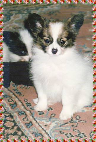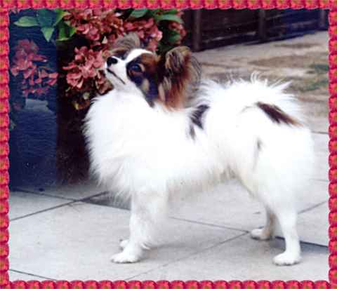 At just nine months old on the day, Gucci made his debut in the ring at the Papillon Club Open Show on 19/11/2000 under judges Kitty Sjong (Inkies - Denmark) and Rose Massey (Australia- Burleeds) where he won the Minor Puppy Dog Class. He went on to take Best Puppy Dog and ended up BPIS. Gucci is now living in happy retirement with his friend Roland (Ringlands Roland at Nouveau) |