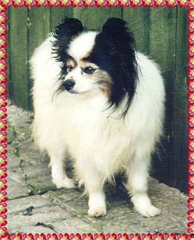 At a very young age Bingo was very poorly with Parvo, his two litters sisters died but Bingo clung on to life and after spending six days in the Vet's Hospital we were told there was nothing further they could do for him. We brought him home and nursed him day and night for weeks and gradually he regained his strength. Bingo was the sweetest of dogs, always happy and always a gentleman. Sadly we lost him on 7 May 2003 aged 17 1/2. |