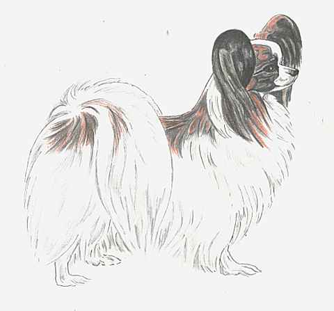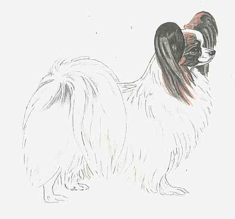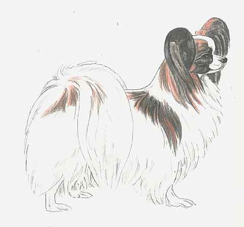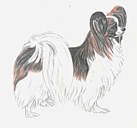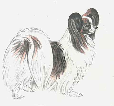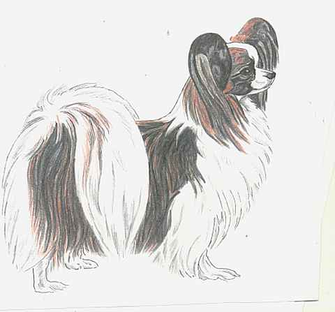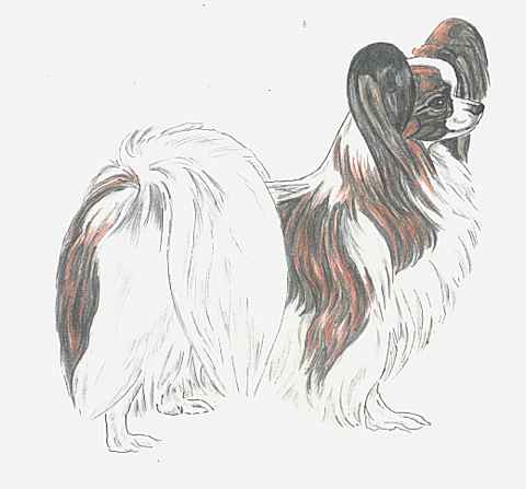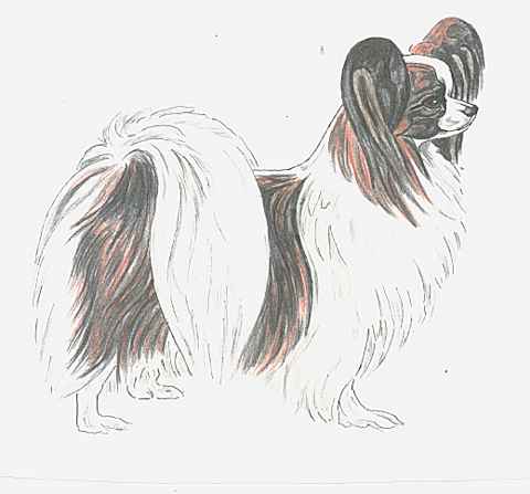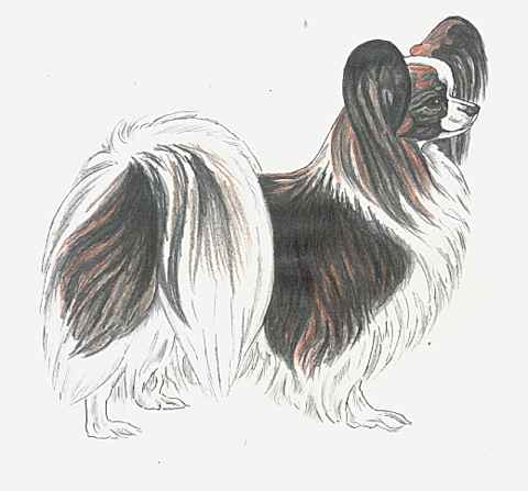 depicts a handsome, striking Red Sable/White Papillon which is very
