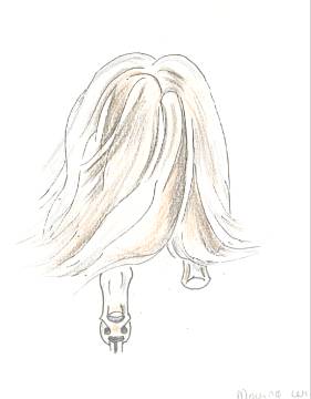 hocks will move in parallel lines J shows the dog moving with one patella (the right) slipping and the left leg counter-balancing. K illustrates a dog “crabbing”. This is a movement about which expert’s theories vary. Again it will be discussed in more detail on the text in the Book. In this type of movement the entire hindquarters twist to one side, as can be seen here, and the hind action is out of alignment with the forward thrust of the body L is not placed on the same templates as A to K. It shows a dog moving close behind but with great drive, as seen by the upward displacement of his hind furnishings. The movement lacking in the sequences A-K is a dog moving with sickle hocks. Deirdre has found this very difficult to depict for, as seen from the rear, the hocks would in fact disappear underneath the dog altogether. No drawing she has done so far shows this in a manner which is helpful. If anyone can supply a photo of a sickle hocked dog - in any position - this would be of great assistance. |