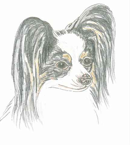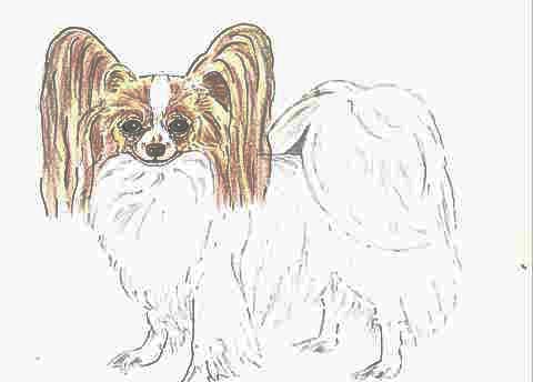 We are fortunate to have received a good selection of photos depicting both good and bad pigmentation, also photos of liver and liver/tan Papillons. Here are two drawings illustrating poor pigmentation. | |